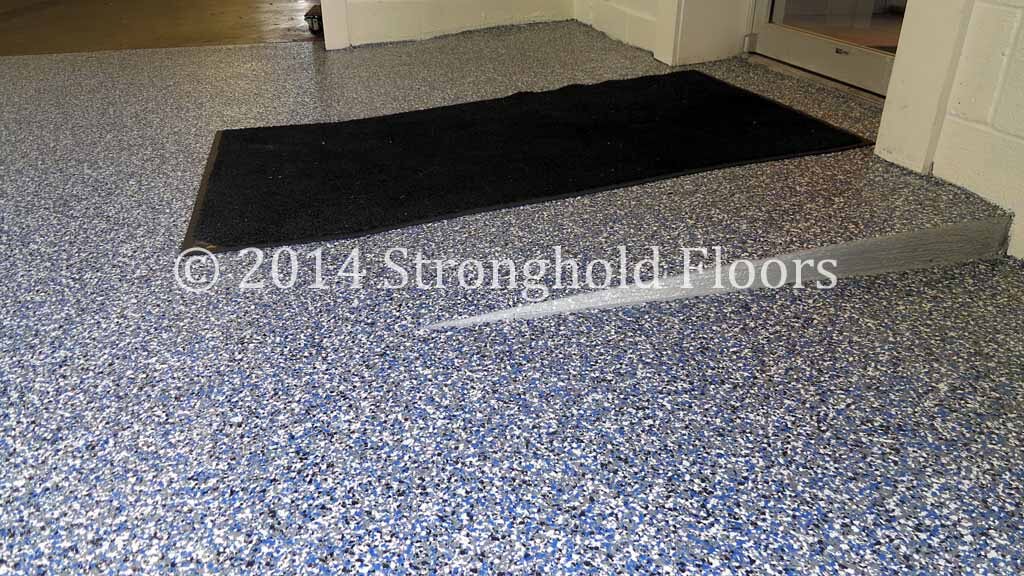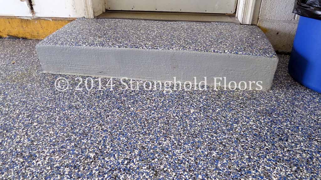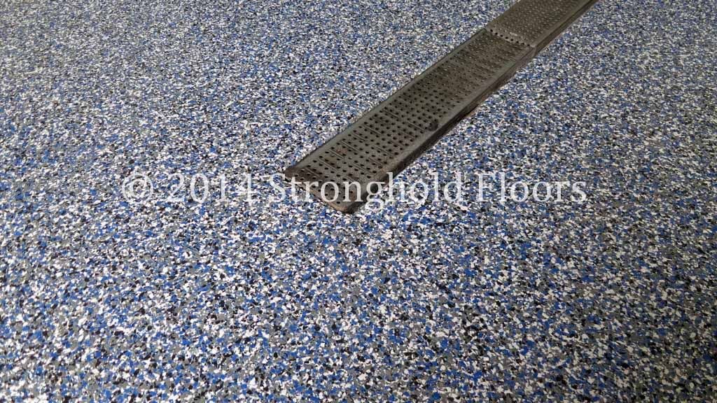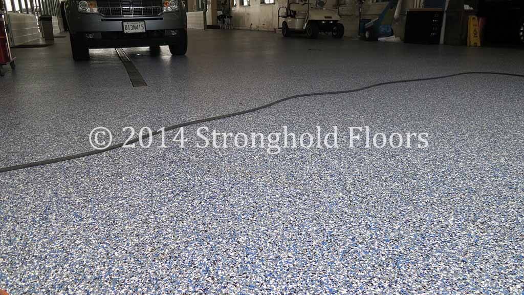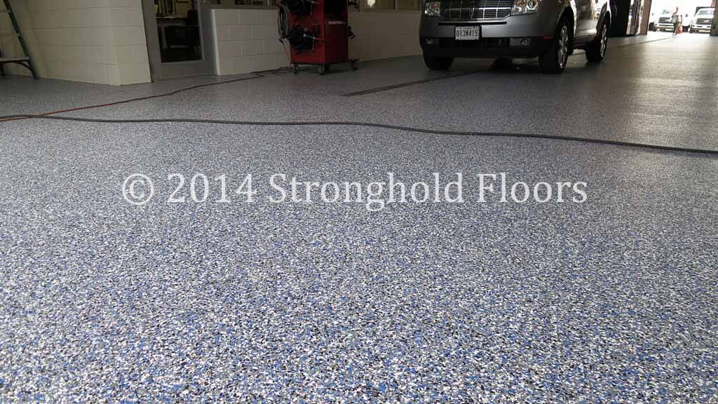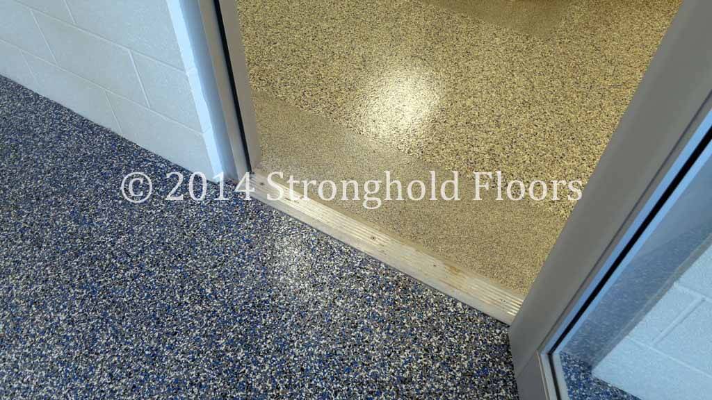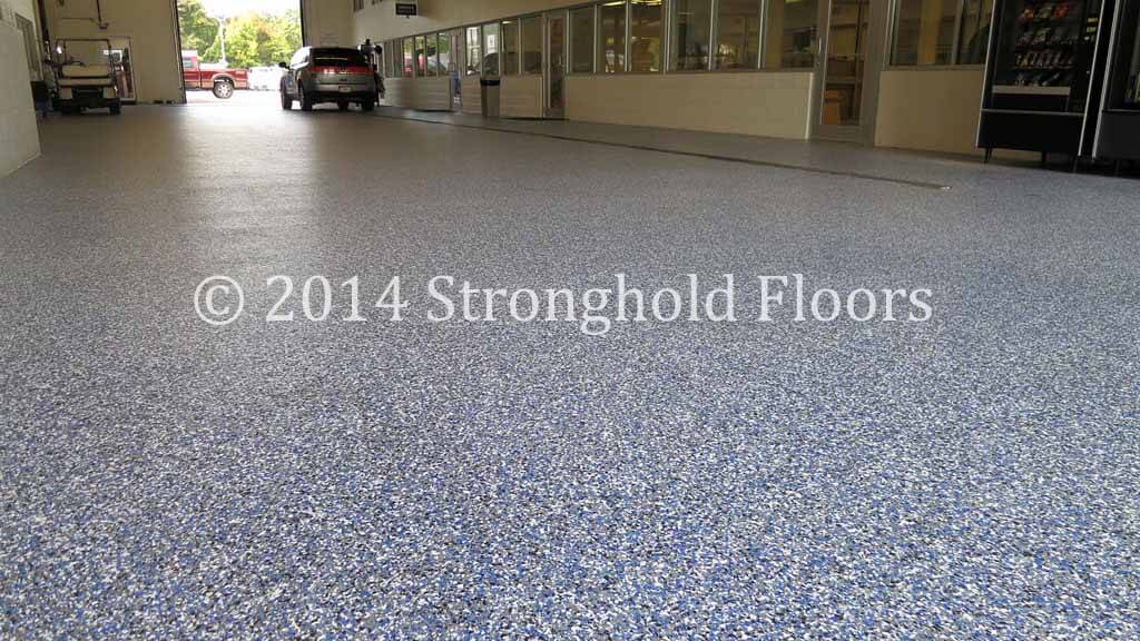 Decorative chip, epoxy coatings applied in drive-thru area.