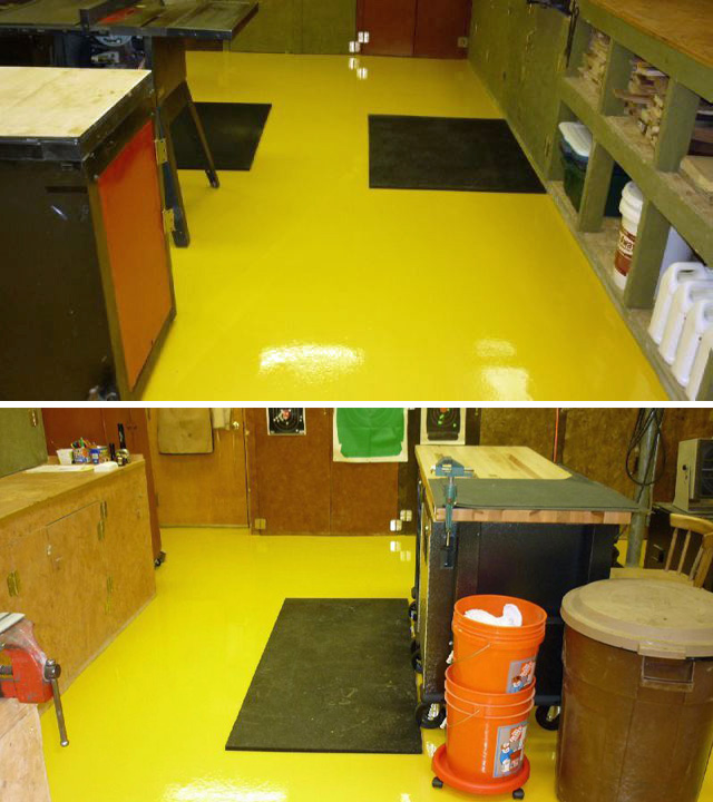 The garage floor paints and epoxy kits are, essentially, fortified latex or enamel paints. They lack the bond strength, durability, and chemical resistance of STRONGHOLD FLOORS' coatings.