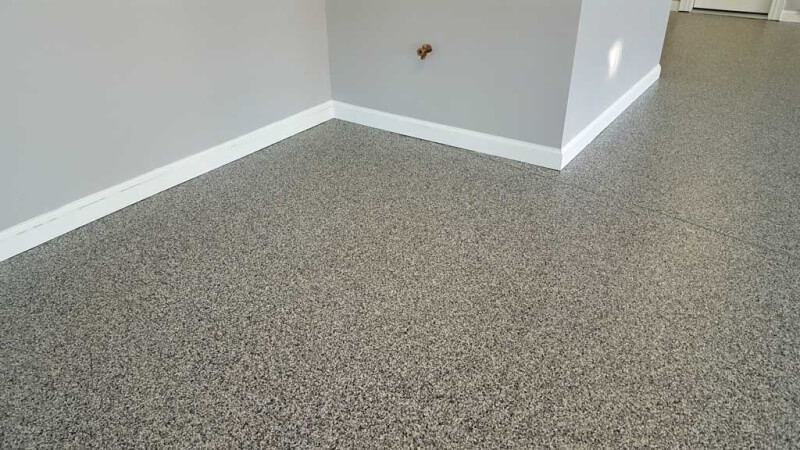 This garage received our Lehigh 1/4″ decorative chip, garage coating system.